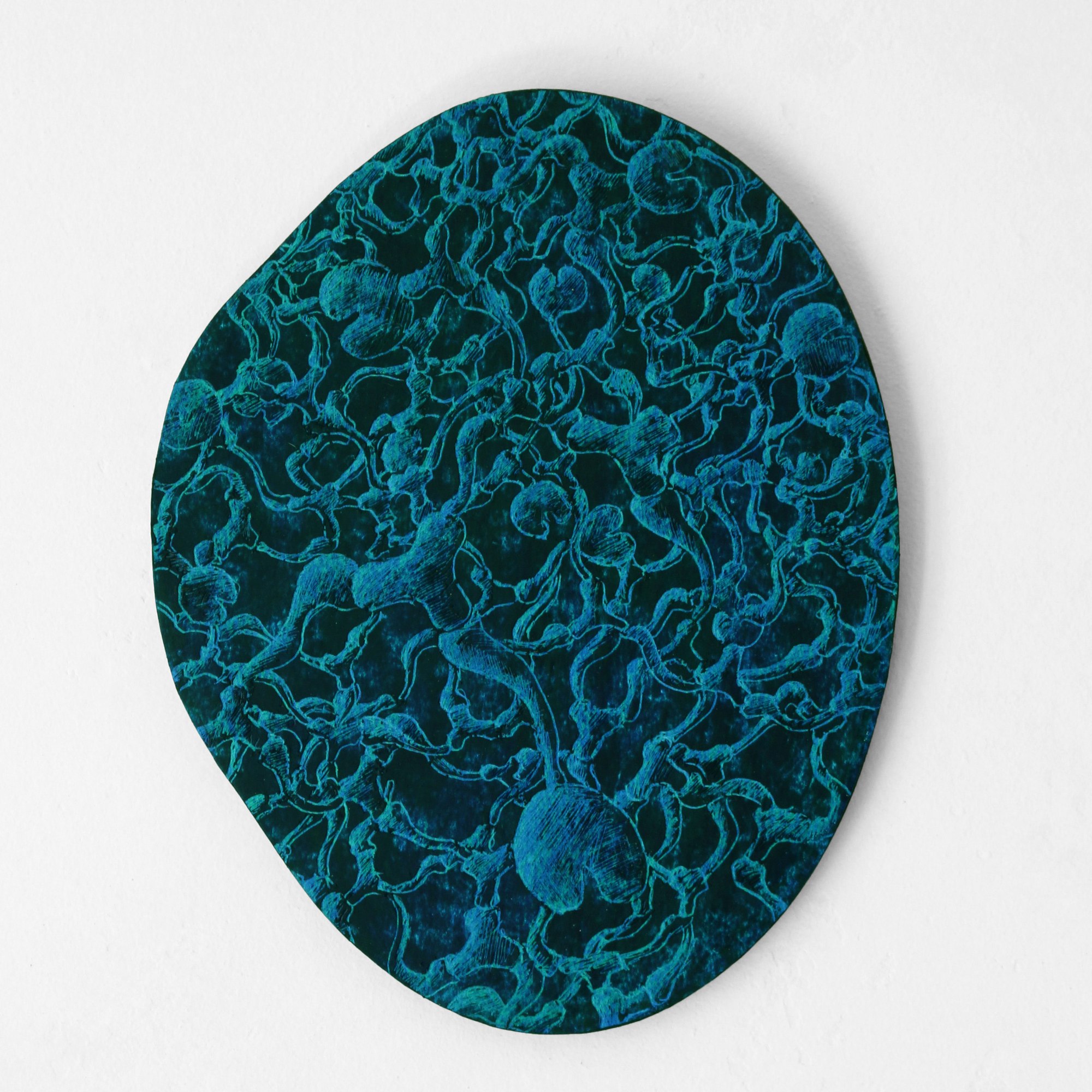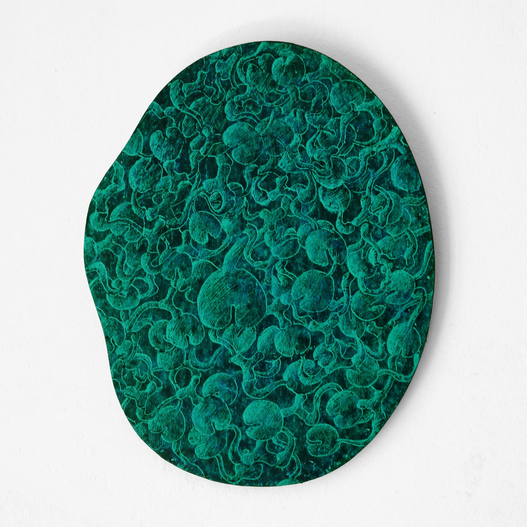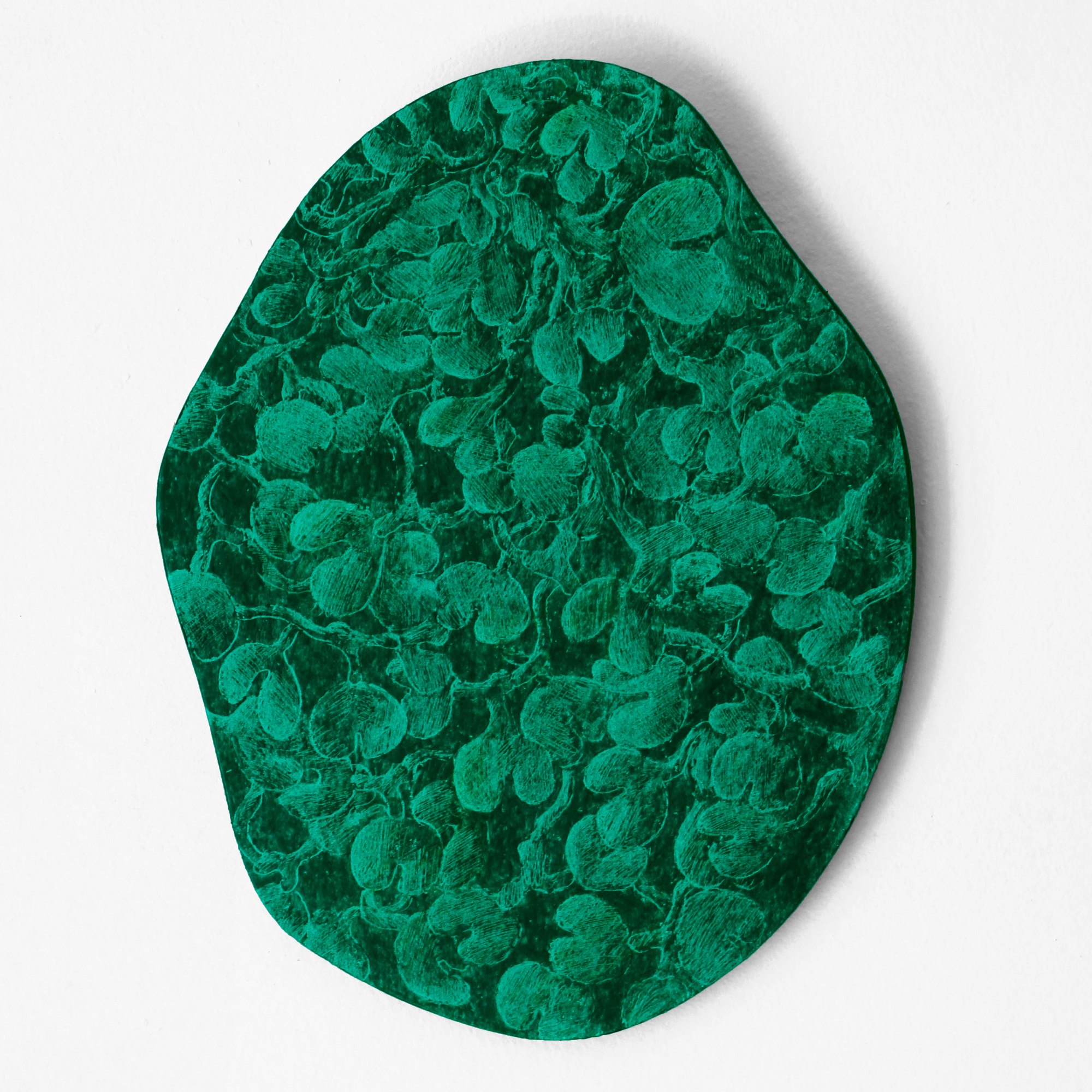 The form has a movement which is going through all the drawing that is represented in it. The shapes of the leaves are changing from smooth to sharp. When the element of the water is still predominant, the shapes of the leaves are more rounded. But as soon as the light gets stronger they become sharper. Each form of the leaves is connected with a particular shade of green, that manifests the plant in this particular way.