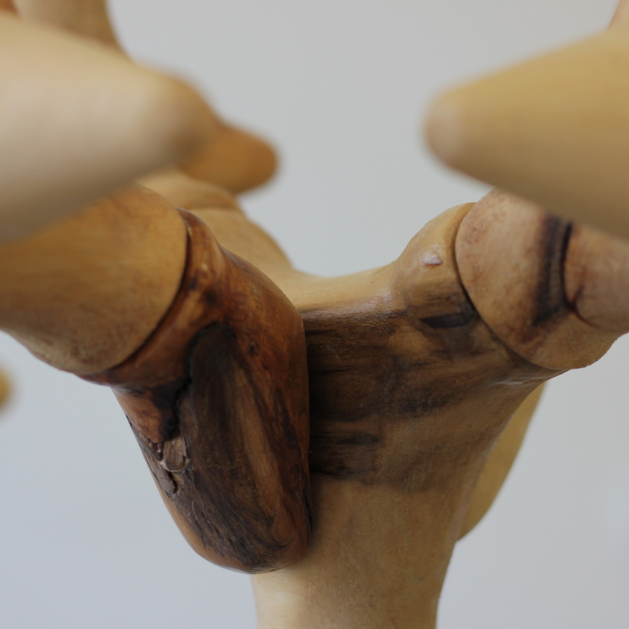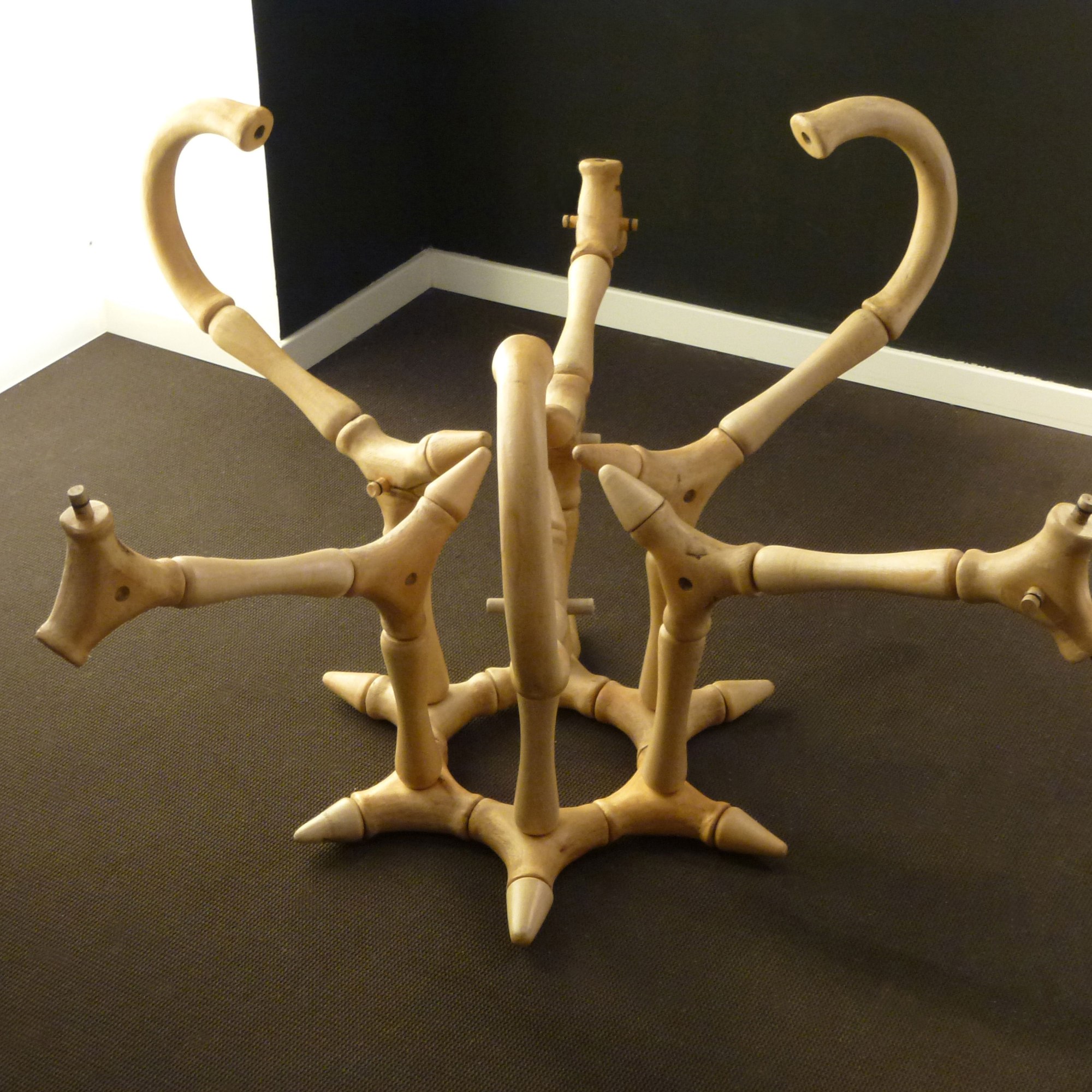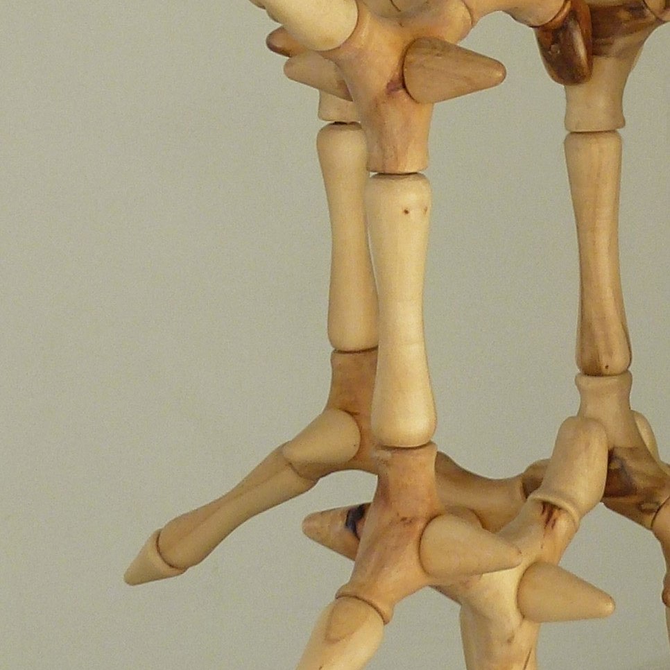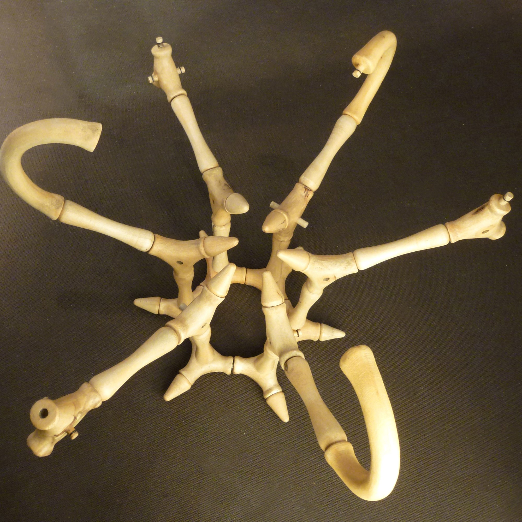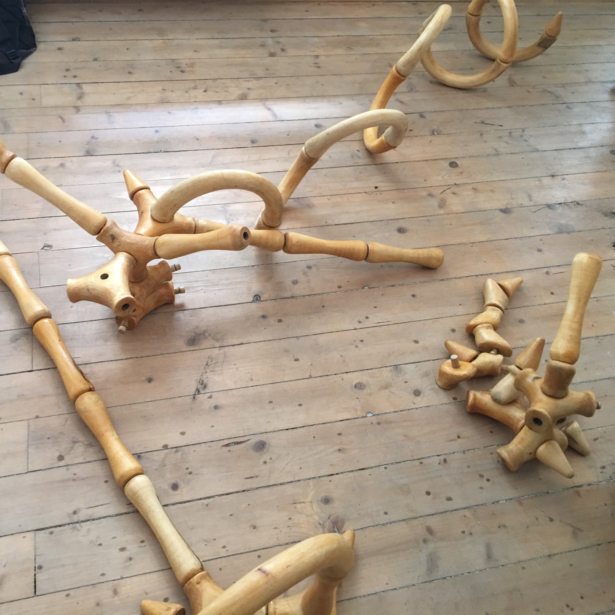 I started to make wooden forms that refer to the geometric plankton shapes. These modules can be connected in many different combinations. They refer to organic elements such as bones, because they have rounded and smooth shape. The curved line leads inevitably to the organic.